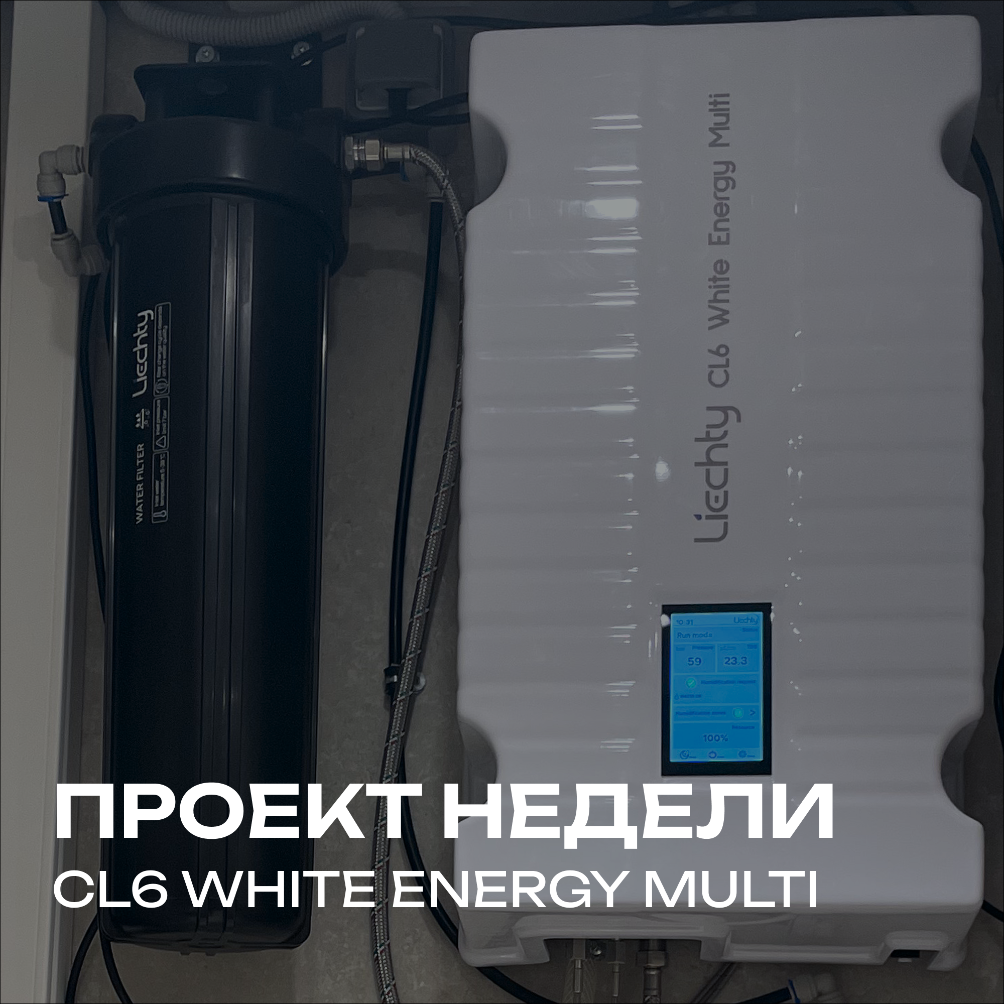 📐 Компактный модуль CL6 White Energy Multi разместился в нише санузла, за предварительную очистку отвечает высокопроизводительный ультракарбоновый фильтр UCF20.